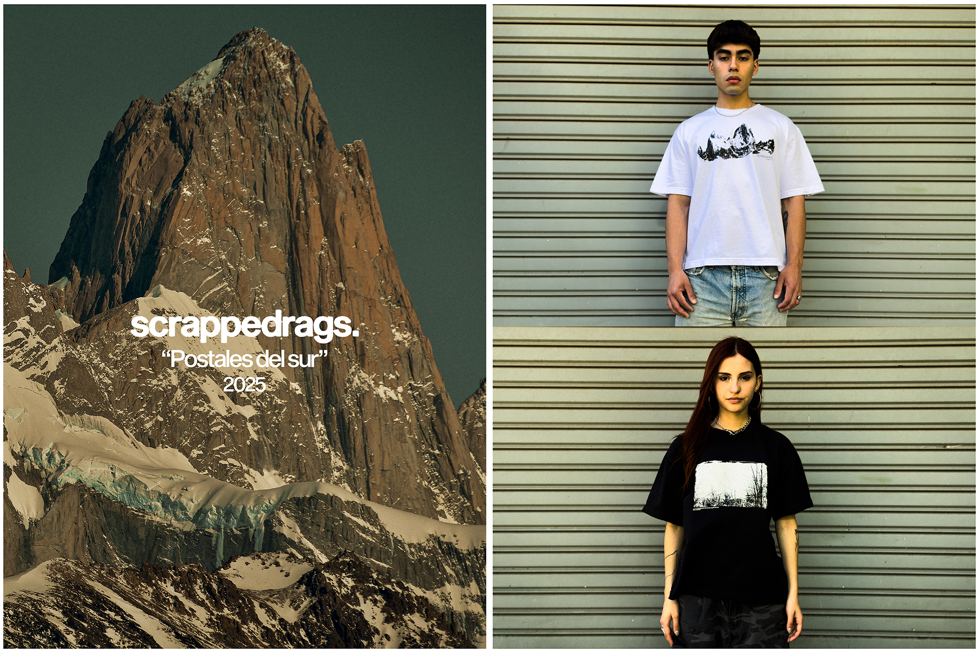 Postales del Sur es una cápsula inspirada en los paisajes australes de la Patagonia Argentina. Dos remeras confeccionadas 100% en algodón peinado, con estampas en serigrafía del Cerro Fitz Roy y del Parque Nacional Los Glaciares.